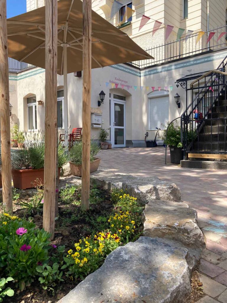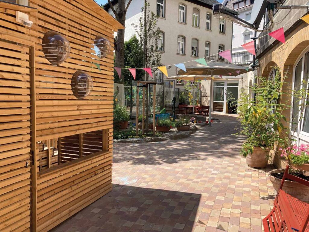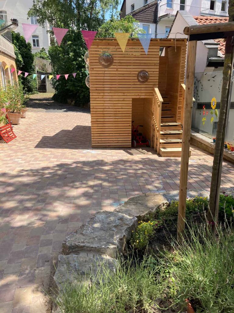 Im Kita-Alltag leben wir Erzieher*innen mit den Kindern das Prinzip der Partizipation, d.h. wir beziehen sie in möglichst viele Entscheidungsprozesse, die ihre Person betreffen, mit ein. Wir verfolgen einen situativen pädagogischen Ansatz, ergänzt durch Montessori- und Picklerpädagogik. Bei unserer musikalischen Früherziehung durch einen Musikpädagogen darf auch viel gelacht werden, ebenso beim Italienisch-Unterricht durch eine Native Speaker. Wir turnen mit den Kindern in einer Turnhalle, es wird gewerkelt, gematscht, geklettert, vorgelesen, gespielt, gekuschelt … Und für unsere Vorschulkinder gibt es ganzheitlichen Unterricht, ganz ohne Arbeitsblätter.